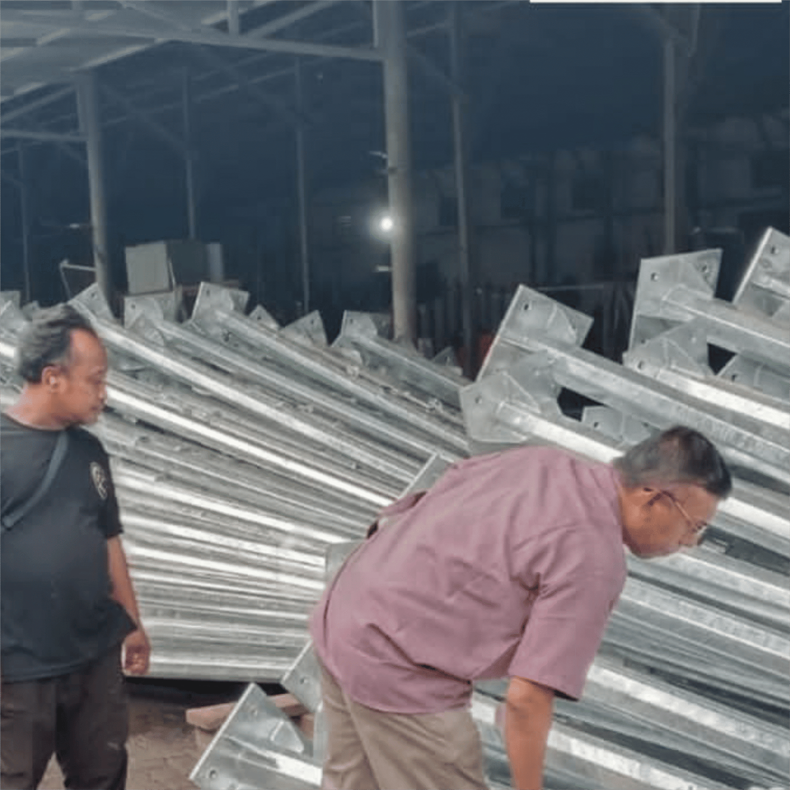 Tiang PJU Dobel Arm Parabol Oktagonal 7 Meter